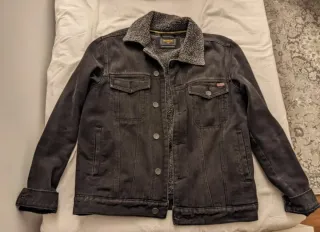 Cazadora vaquera de la marca Billabong talla S de color negro y borrego por dentro, muy calentita.