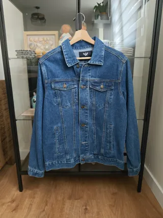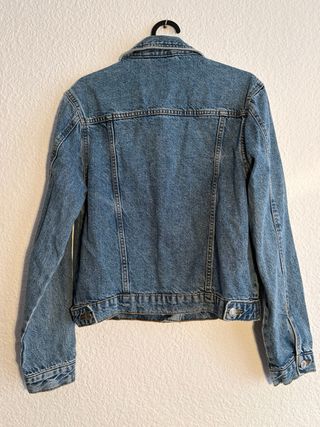 Cazadora vaquera clásica de corte recto. - Cierre de botones metálicos. - Dos bolsillos en el pecho con solapa. - Dos bolsillos laterales. - Cuello camisero. - Talla M - Tallaje holgado. - Acabado fino.