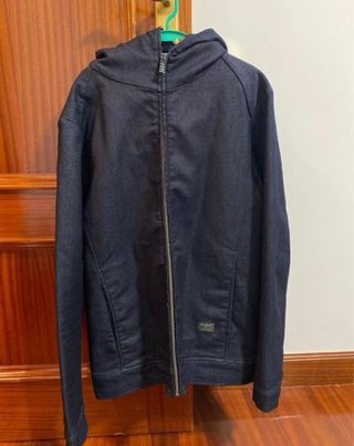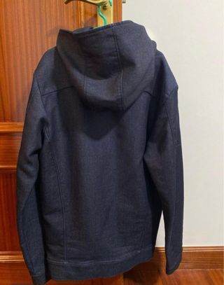 Está súper chula! De esas cazadoras mezcladas con sudadera tan chulas y urbanas. Muy buen estado, no tiene desperfectos, manchas ni roturas. Sirve también para L.