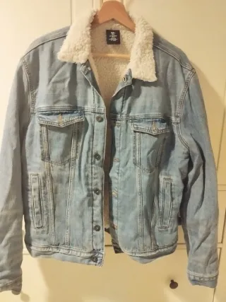 Cazadora vaquera de la marca Pull&Bear, ideal para el frío. - Forro interior de borreguito. - Diseño clásico de denim. - Cierre de botones.