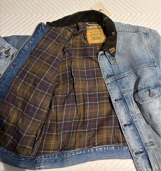 Cazadora vaquera de edición limitada, una colaboración única entre Levi's y Barbour.. Articulo para coleccionistas! - Diseño exclusivo mezcla de cazadora Levis y chaqueta Barbour - Cuello de pana. - Cierre de botones y.cremallera - Bolsillos en el pecho.