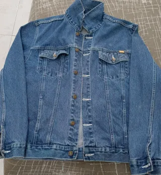 Cazadora vaquera diseño clásico. Mide 48 cm de espalda, 54 cm de pecho y 70 cm de largo. La manga mide 68 cm.