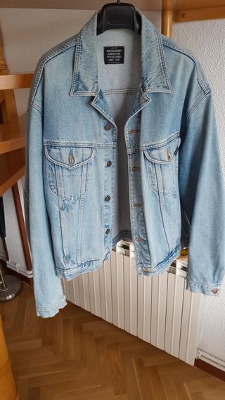 Cazadora vaquera, talla S, marca bershka, medidas de hombros 39,largo chaqueta 42cm.