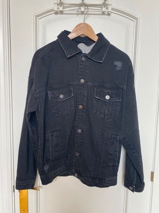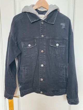 Cazadora vaquera negra con capucha extraible. Talla S. Usado muy pocas veces. Pull&Bear