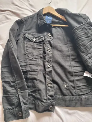 Cazadora G-Star RAW en perfecto estado, como nueva. Un básico versátil para cualquier armario. - Diseño de cazadora vaquera. - Cierre de botones metálicos. - Dos bolsillos en el pecho con solapa y botón. - Costuras visibles en contraste.
