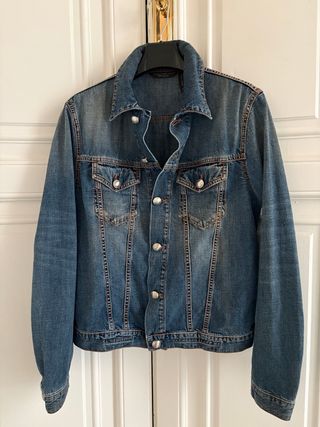 Cazadora vaquera talla M de la marca Ralph Lauren, con desgastes y "pelados" de fábrica. Producto original comprado por mí. Ha tenido uso, pero se encuentra en buenas condiciones, y se mantiene prácticamente como cuando se compró. Es de tallaje tirando a corto, perfecto si no te gustan las chaquetas largas. Se pueden pedir medidas.