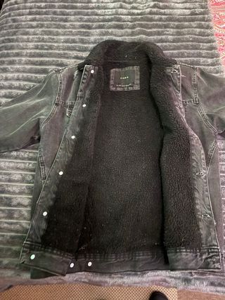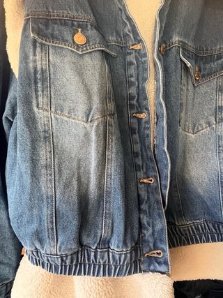 Cazadora vaquera con forro interior de borrego. - Cierre de botones metálicos. - Bolsillos en el pecho. - Puños abotonados. Puesta dos veces