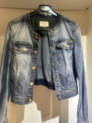 Cazadora vaquera de estilo vintage. Una prenda clásica y versátil. - Diseño de corte recto. - Cierre de botones metálicos. - Bolsillos en el pecho. Marca Friday's Project (en la descripción pone otra porque no me dejaba subir sin marca y no sale la opción)