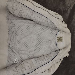 Cazadora vaquera blanca con un estampado floral tipo desigual. Marca realizada en París. Es elástica. De axila a axila 52 cm sin estirar, estirado unos 60 cm. - Dispongo de falda haciendo juego para hacerte un precioso conjunto . lleva cinturón ( ver en mi armario : 9 euros )