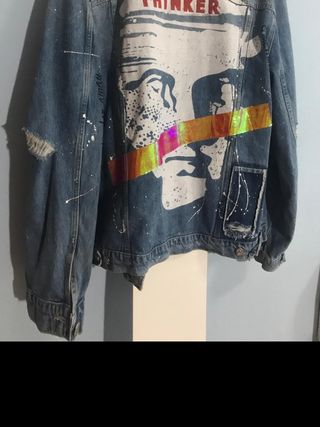 cazadora chaqueta vaquera denim volantes y abalorios. marca Carlota&co. estrechada al lateral para que quede mas justa pero se puede sacar.