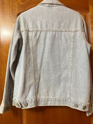 Cazadora vaquera azul claro de Bershka talla M. Practicamente sin uso, como nueva.