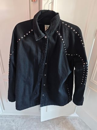 Cazadora vaquera con un diseño moderno y atrevido. - Detalle de tachuelas plateadas. - Cierre de botones. - Cuello clásico.