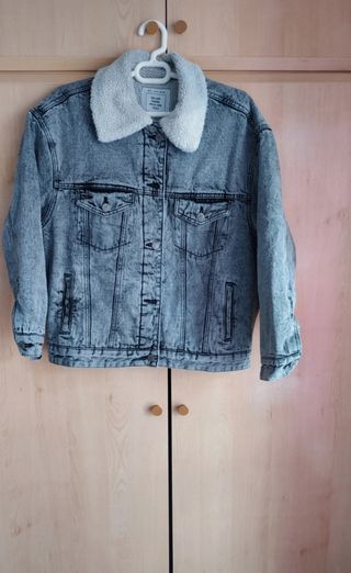 Cazadora vaquera gris con borreguito por dentro. Usada, pero aún en buen estado.