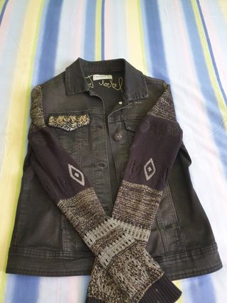 Cazadora vaquera negra con mangas de lana/punto en perfecto estado para salir a lucirla😊😊