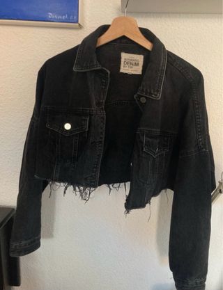 Cazadora vaquera crop top negra