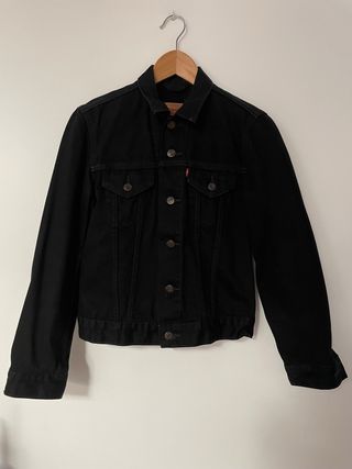 Cazadora vaquera de Levi's en color negro, talla XL. Un clásico atemporal para cualquier armario. NUEVA A ESTRENAR - Diseño de corte recto. - Cierre de botones metálicos. - Bolsillos en el pecho. - Forro interior de pelo sintético. Fue un regalo comprado en El Corte Inglés por valor de 140€. La vendo porque no me vale ni la L, ni la XL.