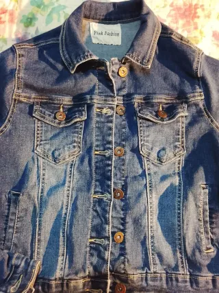 Cazadora vaquera de la marca Pink Fashion. - Diseño clásico. - Cierre de botones. - Dos bolsillos en el pecho y otros dos en los laterales. - Corto tipo torera. - Tejido elástico. Talla L pero se asemeja más a una M. Medidas en las fotos. Muy poco uso. Sólo envíos. #cazadora #cazadoravaquera #cazadoravaquerachica #cazadoravaqueraelastica