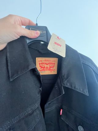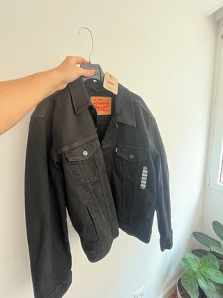 Cazadora vaquera Levi's, modelo Trucker Jacket, en color negro y talla M. Es una prenda nueva, sin usar. - Cierre de botones. - Bolsillos en el pecho. - Diseño clásico de la marca.