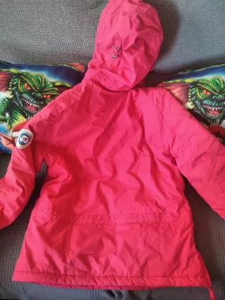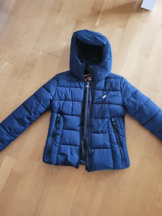 Para edad de 12 años. Chaqueta acolchada reversible con capucha. - Un lado es azul celeste brillante con detalles. - El interior lado es marrón, con forro. Calentita y un corte ideal . Acolchada con costuras. Muy bien uso , muy poco uso. Se puede disfrutar como nueva!