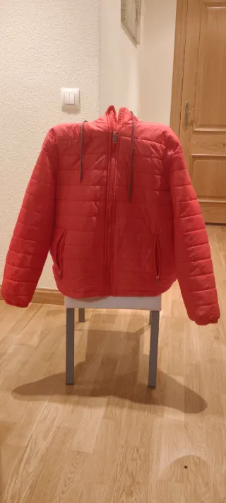 Cazadora acolchada con capucha. - Diseño unisex. - Capucha extraíble. - No tiene marca. - sin estrenar. - Talla más pequeña de lo que sería una L.