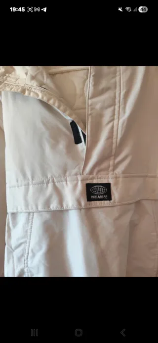 Cazadora de la marca Pull&Bear en color beige. Un básico versátil para cualquier ocasión. - Cierre de cremallera. - Bolsillo frontal con logo. - Diseño moderno.