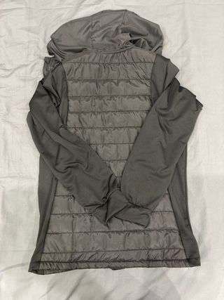 Cazadora plateada con un diseño acolchado y capucha. - Cremallera frontal. - Bolsillos con cremallera lateral. - Puños elásticos.