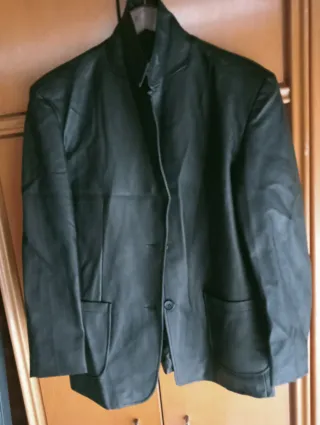 Cazadora de cuero con un diseño clásico y elegante. - Cierre de botones. - Dos bolsillos en el pecho. - Dos bolsillos laterales.