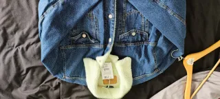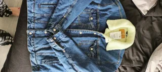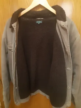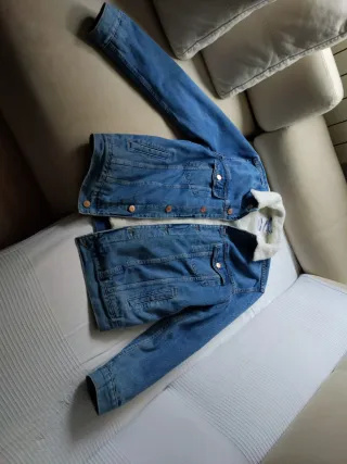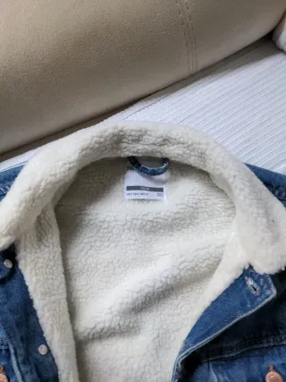 Cazadora vaquera con forro interior de borreguito. Talla S. Unisex puesta 2 veces - Cierre de botones. - Bolsillos en el pecho. - Puños abotonados.