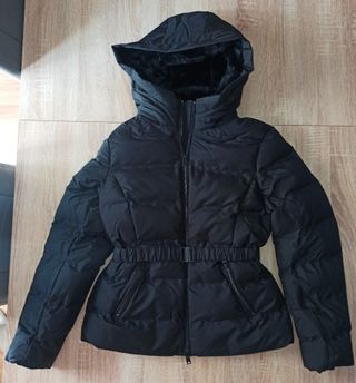 Cazadora acolchada para mujer con un diseño moderno y elegante. Perfecta para mantenerte abrigada con estilo. Talla S nueva con etiquetas - Capucha con interior de pelo. - Cinturón elástico en la cintura. - Cierre de cremallera frontal. - Bolsillos laterales con cremallera.