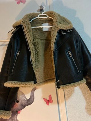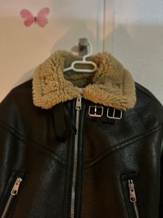 Cazadora estilo aviador de Zara, con forro de borreguito. - Diseño de doble faz. - Cierre de cremallera. - Puños y bajo con detalle de pelo. - Colección 2026, a estrenar