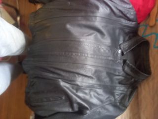Cazadora de estilo bomber en color negro. - Da poca talla XL, XXL más o menos. - Cuello alto. - Cierre de botones y cremallera - Bolsillos frontales e interiores. - Puños y bajo elásticos. - puños algo rozados, ver fotos.