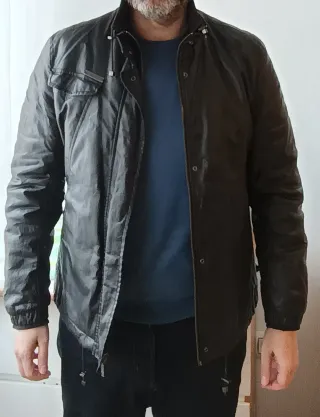 Cazadora en buen estado, lista para usar. - Diseño moderno y versátil. - Cierre de cremallera y botones. - Bolsillos frontales. - Puños y bajo elásticos. La talla es una 48 pero muy pequeña, equivale a una M-L. El modelo mide 1'77.
