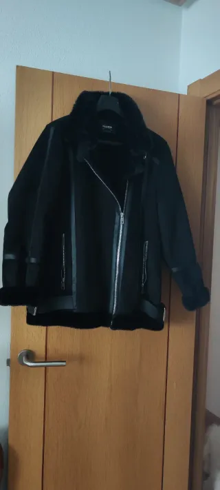 Cazadora estilo doble faz con interior de pelo. - Diseño moderno. - Cierre de cremallera. - Bolsillos laterales con cremallera. - Puños y cuello con pelo. Puesta solo en 2 ocasiones