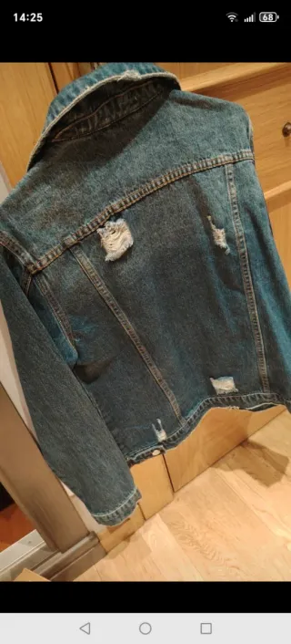 Cazadora vaquera de la marca Zara, con un estilo desgastado y moderno. - Diseño clásico de denim. - Bolsillos en el pecho. - Cierre de botones.