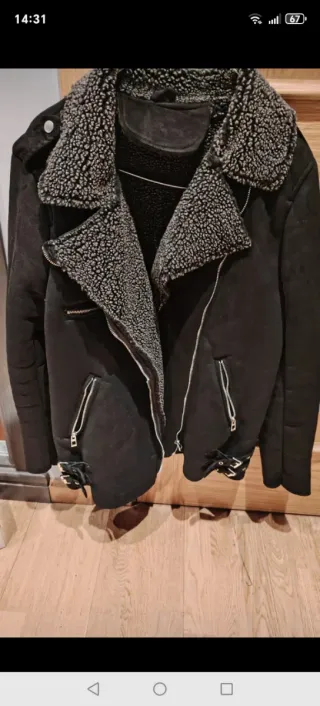 Cazadora estilo motero con forro interior de borreguito. - Cuello con borreguito. - Cierre de cremallera. - Bolsillos con cremallera.