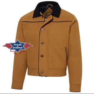 Chaqueta estilo cazadora de la marca Stars & Stripes. Un diseño clásico con detalles modernos. - Cuello negro. - Ribetes negros. - Cierre de botones y cremallera - Bolsillos laterales e interior . - Talla XL - interior acolchado - lona resistente a cualquier roce. Ideal para montar a caballo