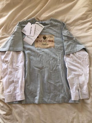 Camiseta de manga larga de Acne Studios. - Manga larga con detalle de camisa blanca. - Estampado frontal con logo y nombre de la marca.