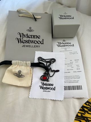 Collar Vivienne Westwood con el icónico diseño Tiny ORB y un detalle en color rojo. - Diseño: Tiny ORB - Color del detalle: Rojo - Incluye bolsa de tela y caja original.