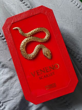 Veneno Scarlet Extrait De Parfum 100 ML. Notas de salida : Fresa, caramelo y mora . Notas de corazón: Frambuesa, cedro y canela Notas de fondo: Cuero, caramelo, vainilla, pachulí, haba tonka y abeto