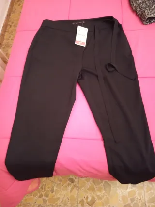 Pantalón elegante de Zara Basic en color negro. Ideal para ocasiones formales o de oficina. - Corte moderno y favorecedor. - Tejido de calidad para mayor comodidad. - Detalle de cinturón o lazada.