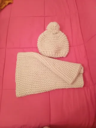 Conjunto gorro y bufanda tejido blanco