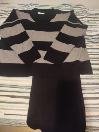 Conjunto de punto con diseño de rayas. - Jersey de manga larga. - pantalon pata ancha a juego Da bastante talla hasta la xl es bastante amplio