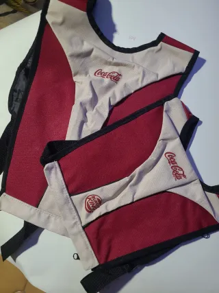 Conjunto de mochilas promocionales con diseños de Burger King y Coca-Cola. - Diseño bicolor en rojo y beige. - Correas ajustables para mayor comodidad.