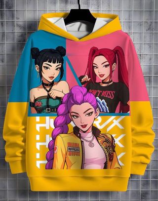 Conjunto de manta y sudaderas con temática K-Pop. - Diseño inspirado en K-Pop Demon Hunters. - Colores vibrantes en azul y morado.