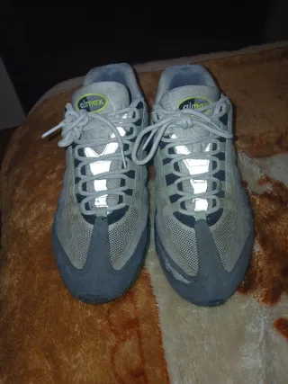 Zapatillas Nike Air Max 95 con un diseño icónico y cómodo. - Combinación de colores beige y gris. - Detalle de logo en la lengüeta.