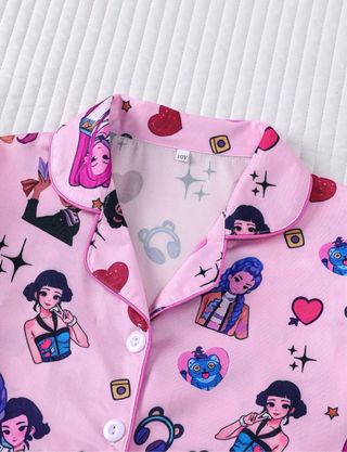 Conjunto de pijama con estampado de personajes de K-Pop. - Diseño divertido y colorido. - Manga larga y pantalón largo. talla 8 años