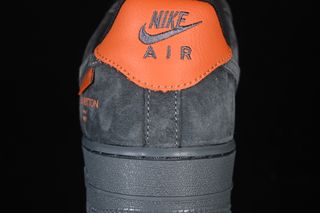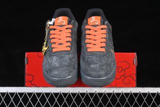 Zapatillas Nike Air Force 1 Low personalizadas con un diseño inspirado en Chrome Hearts. Combinan detalles en gris y naranja. - Cordones naranjas. - Charm dorado. - Suela gris. -talla 36 a 45
