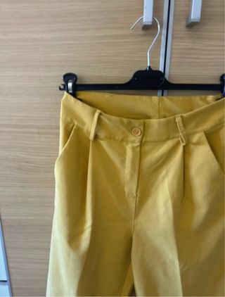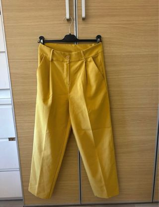 Pantalón de vestir de la marca Zara en color amarillo. - Diseño de talle alto. - Pierna recta. - Bolsillos laterales.