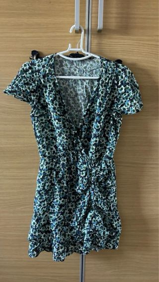 Vestido corto de Zara con estampado floral. - Escote en V cruzado. - Cintura elástica. - Falda con volantes.