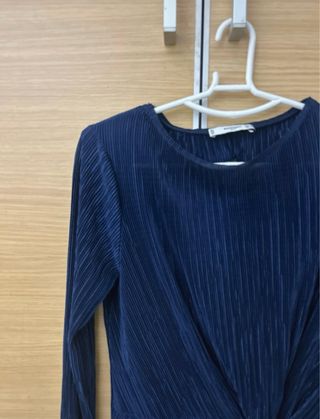 Vestido de Mango con un diseño elegante y moderno. - Tejido plisado. - Detalle de nudo en la cintura. - Manga larga.